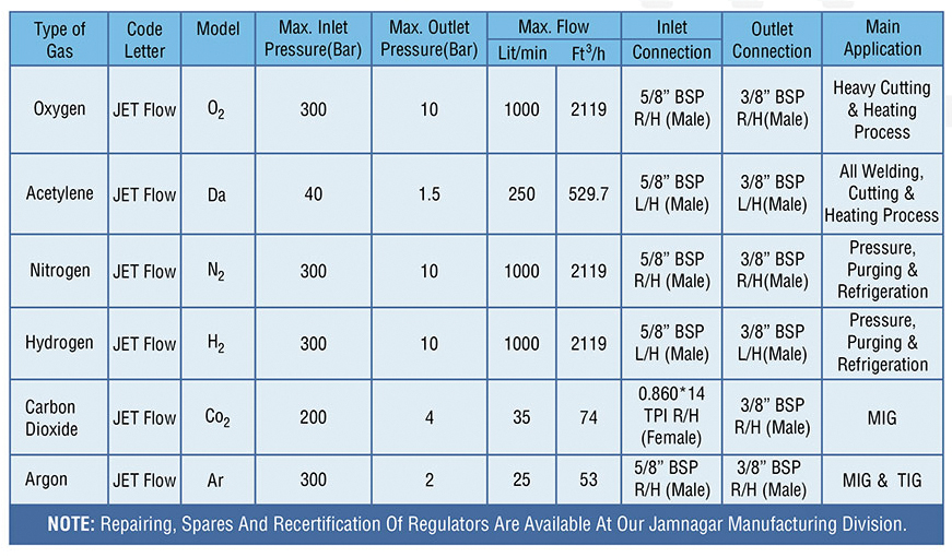 DIJ INDIA ISI Single Stage Regulators continue the tradition of superior performance in the single stage range. The latest materials and advance component design make these regulators suitable to meet the stringent demand of use in shop-floor as well as in outdoor conditions with enhanced safety. The regulators are provided with two pressure gauges one to indicate the inlet pressure and other to indicate the outlet pressure. The working pressure can be adjusted by the pressure adjusting knob. DIJ regulators have proven performance in MIG welding and TIG welding application.
