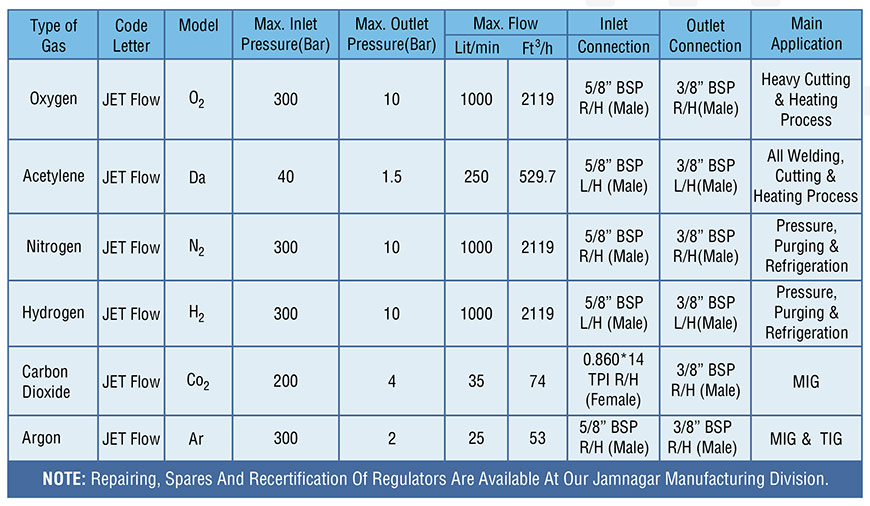DIJ INDIA ISI multi stage regulators continue the tradition of superior performance in the double stage range. The latest materials and advance component design make these regulators suitable to meet the stringent demand of use in shop-floor as well as in outdoor conditions with enhanced safety. The regulators are provided with two pressure gauges one to indicate the inlet pressure and other to indicate the outlet pressure. The working pressure can be adjusted by the pressure adjusting knob. DIJ INDIA regulators have proven performance in MIG welding and TIG welding application.
